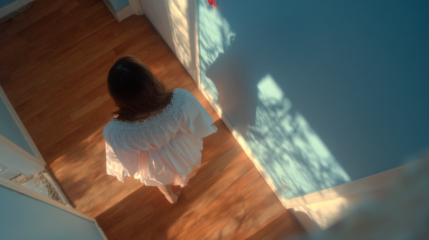 Scene of Simona being surveilled by the camera.