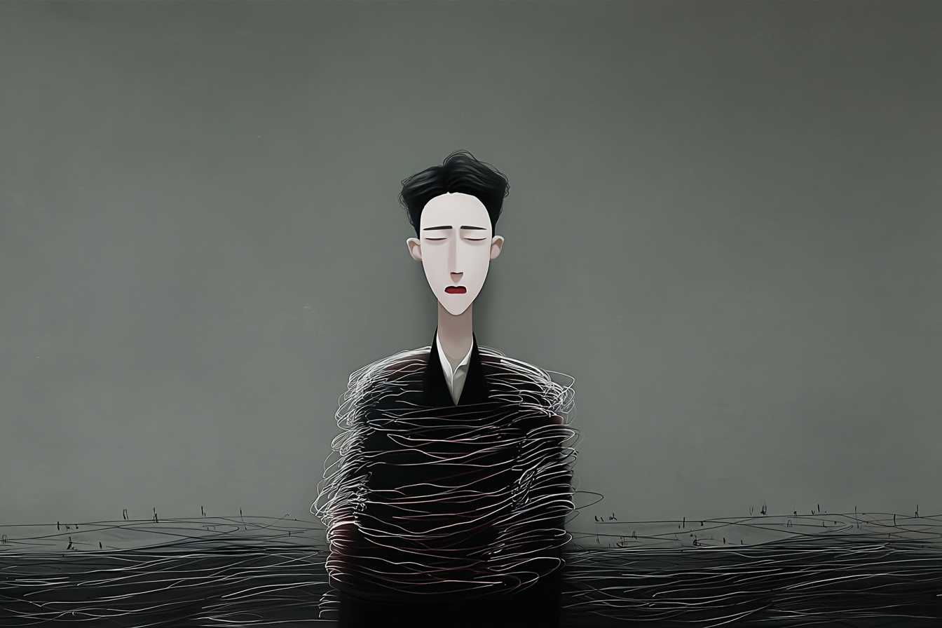 A committed artistic sketch style throughout. Faceless, vague, and abstract characters living in a world of emotional impressionism.